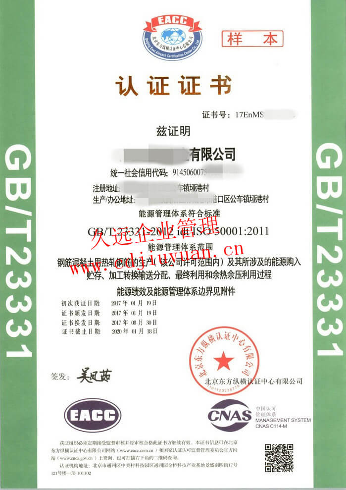 ISO50001能源管理體系認(rèn)證證書